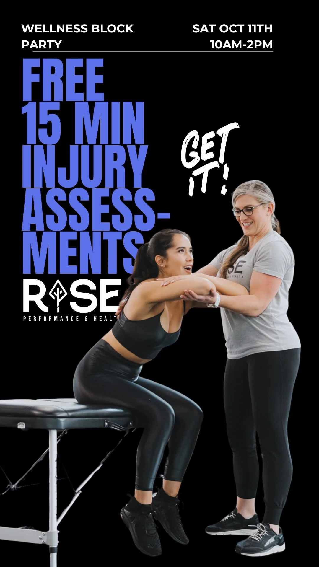 FREE Injury Assessments with Physical Therapist Dr. Stephanie, owner of RISE Performance & Health!